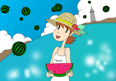 本日のテーマ 「女性のキャラクターイラスト」 シリーズ.5 【夏の海とスイカ】