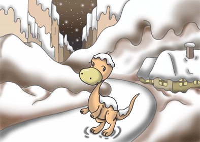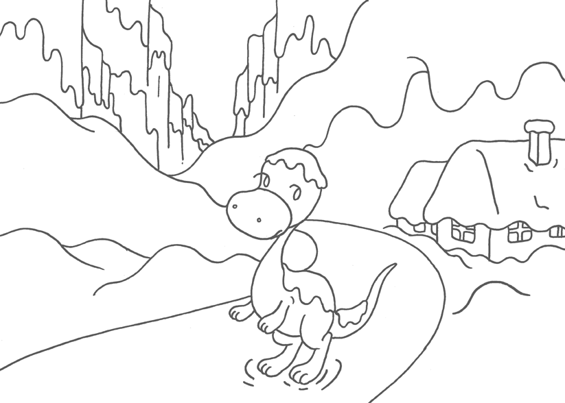 本日のテーマ 恐竜キャラクター塗り絵 シリーズ.10 「雪の中で佇む恐竜」