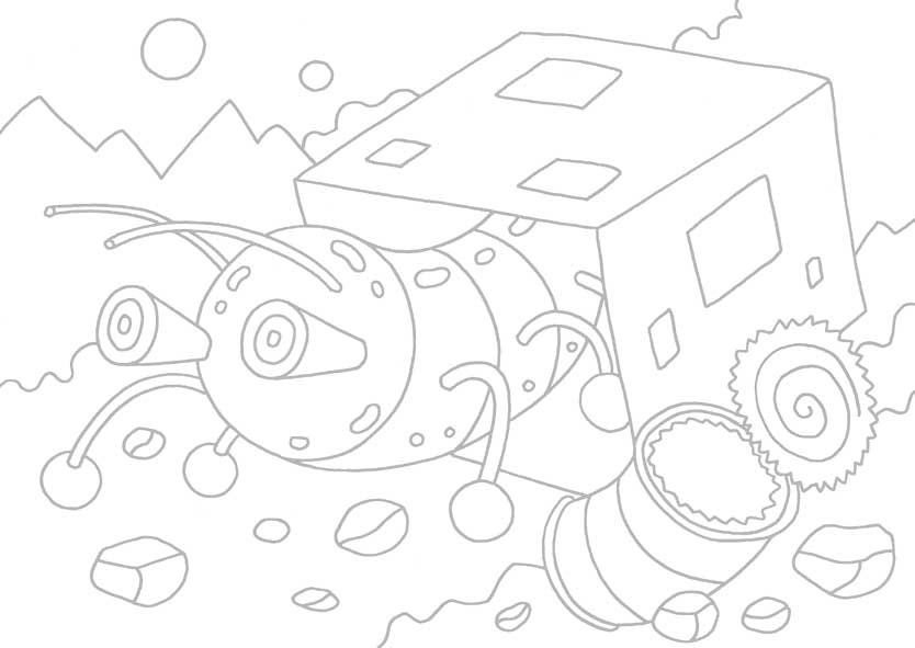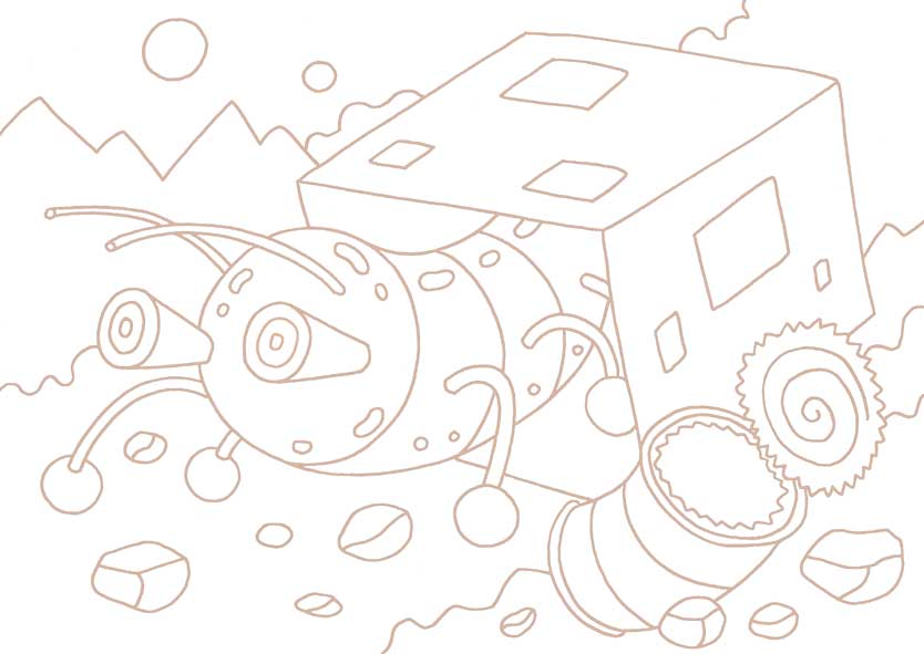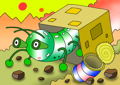 虫をモチーフにしたロボット・キャラクターのシリーズ。四回目は青虫(イモ虫)。寝床は小さなダンボール箱。毎晩ここで眠っている。