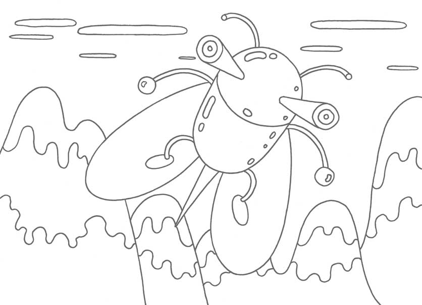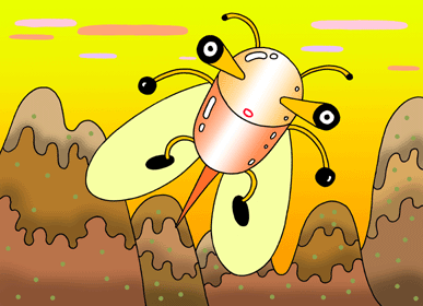 虫をモチーフにしたロボット・キャラクターのシリーズ。六回目は2体の虫ロボット。リラックスしているところに突然針を持ったムシが現れてビックリ仰天!!。