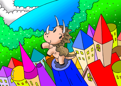 本日のテーマ 恐竜キャラクター塗り絵 シリーズ.9 「街を眺める剣竜」